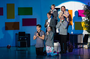 A másik nagyon jó pillanat, amikor álltunk előadás előtt a folyosón, Tamás beszélt és mindenki hangolódott az előadásra. Mindenki szemében az a csillogás, hogy mindjárt kezdünk.